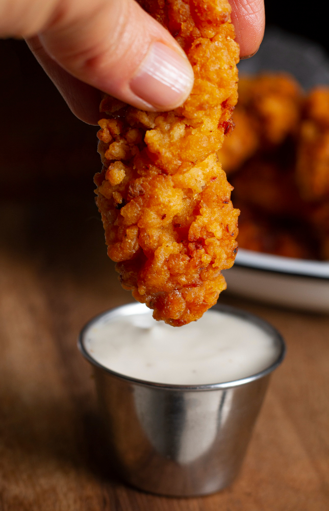 Pollo crujiente, lechuga, tomate, bacon y queso (extra de huevo +1€)