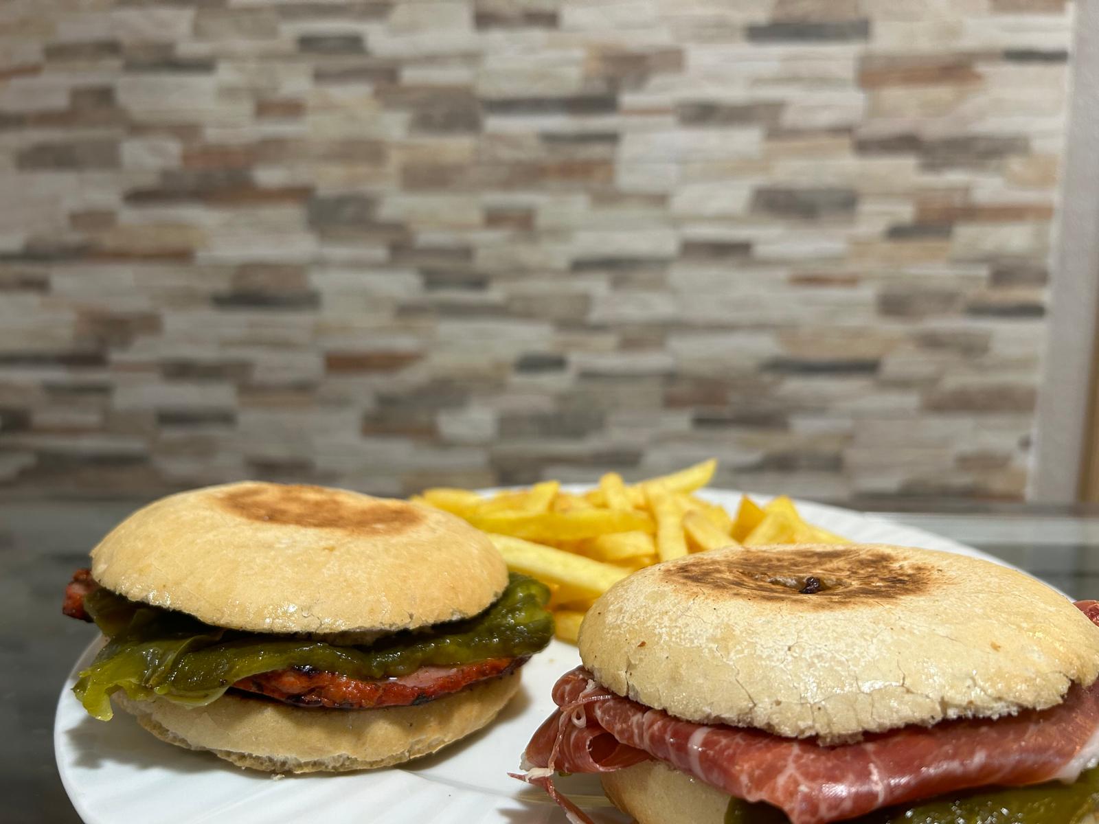 Carnde de la sierra de guadarrama, lechuga, tomate, bacon, queso y cebolla caramelizada
